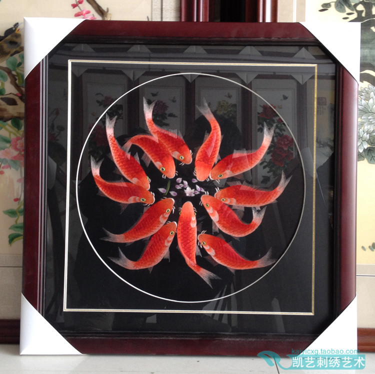 Su embroidery finished embroidery boutique hand embroidery twelve red fish reunion fish every year there is more than a ball and gas dining room painting