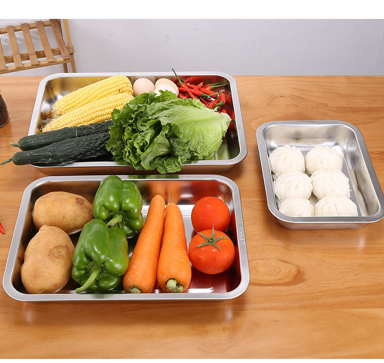 Stainless Steel Square Plate Tray Dinner Plate Rectangular Plate BBQ Plate Deep Square Plate Height 4 8cm