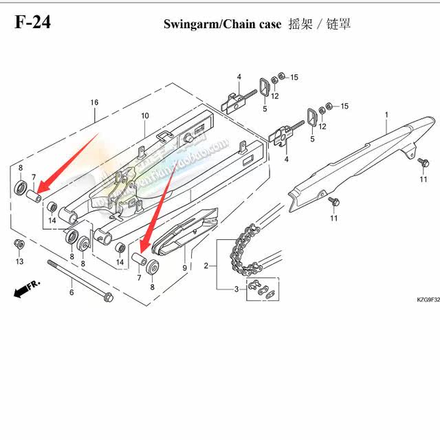 Wuyang Honda original phantom storm front eye Mengyu Road rear rocker arm bushing bearing dust cover original spare parts