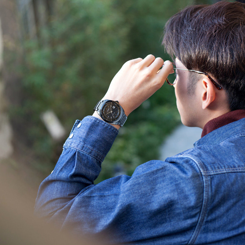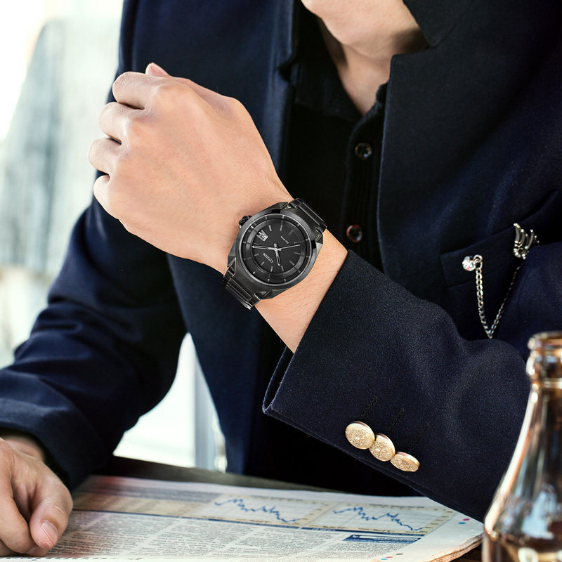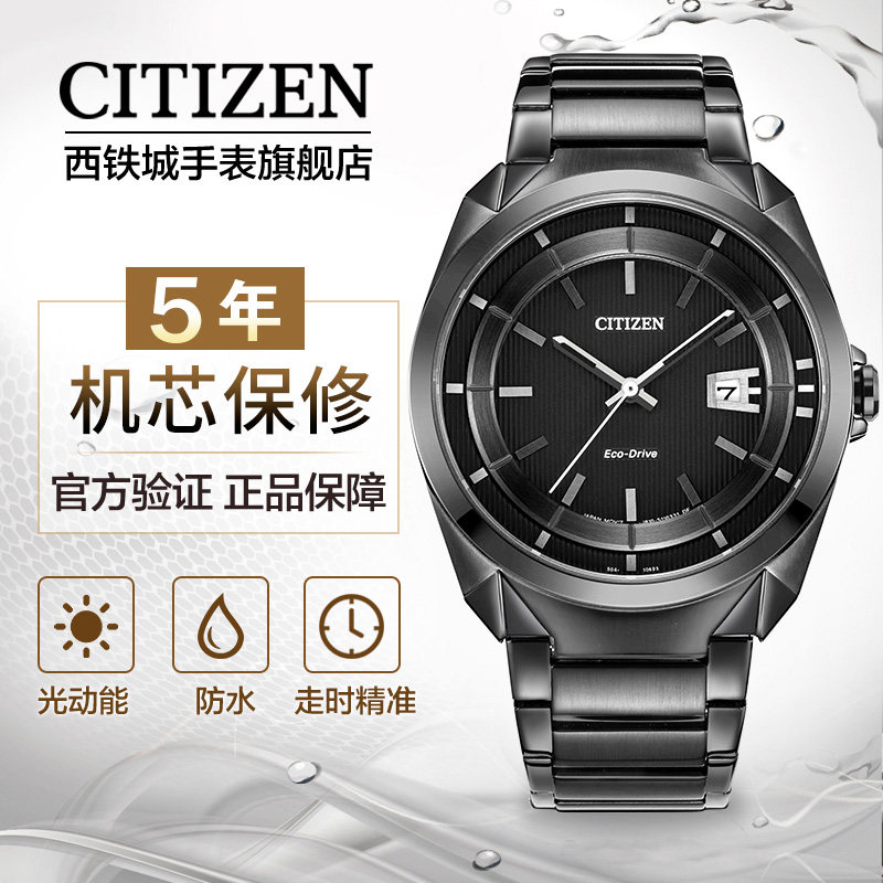 Citizen Flagship store Japan official eco-kinetic waterproof All black steel band black eyes men's watch AW1015