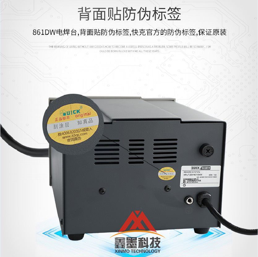 Original QUICK 861DW hot air gun desoldering table Lead-free digital display hot air 861DW 1000W straight air gun