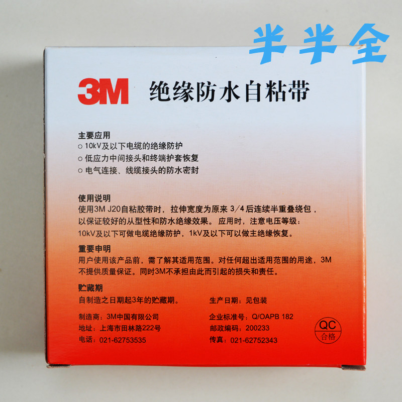 3M electrician adhesive tape J20 high pressure 10kv insulation waterproof self-adhesive moisture-proof sealing rubber elastic black rubberized fabric