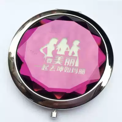 Advertising lettering crystal face makeup mirror folding mirror double-sided metal round flip makeup mirror exquisite custom gift