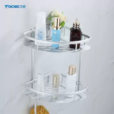 Watson bathroom space aluminum bathroom rack powder room shower tripod double corner basket with adhesive hook