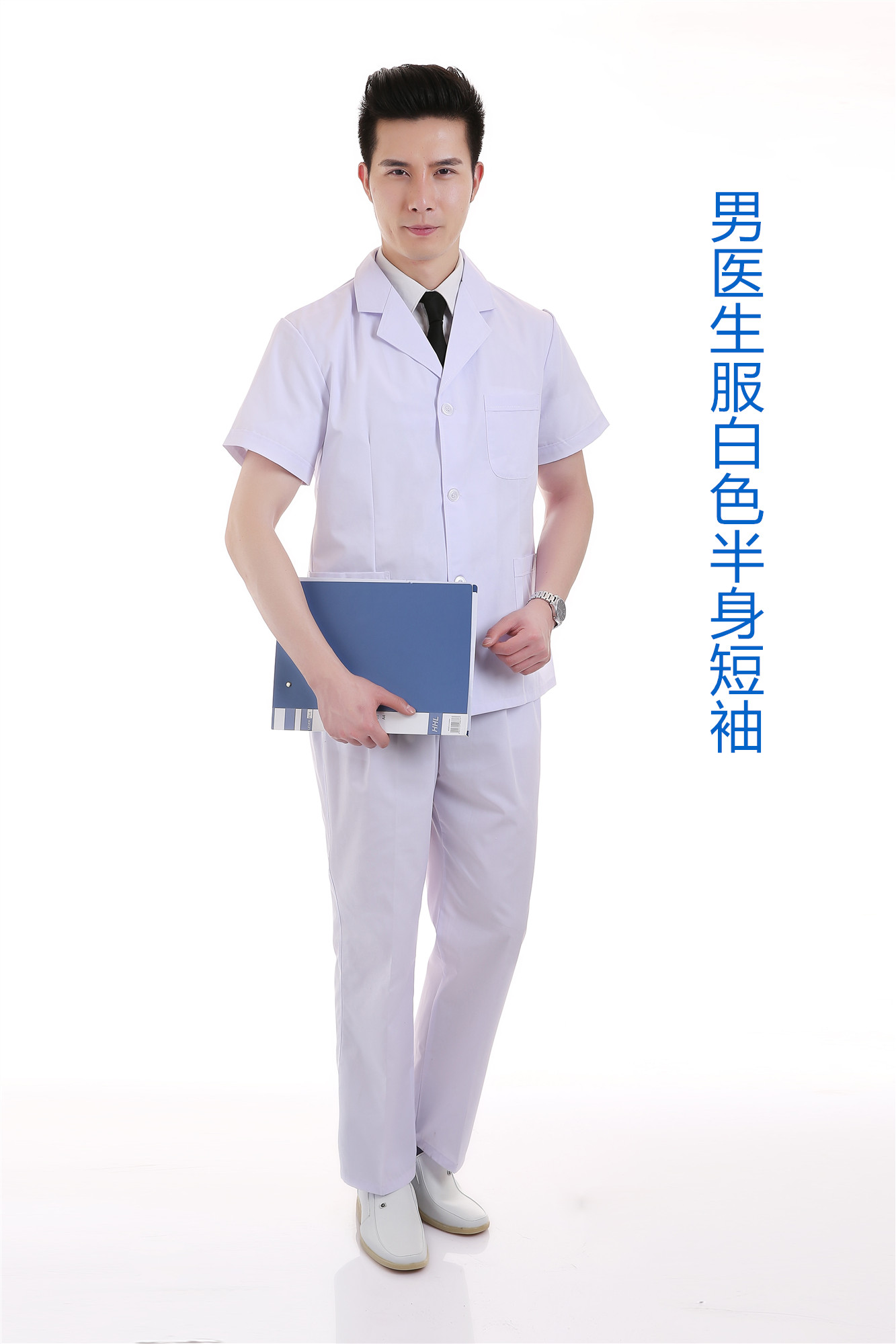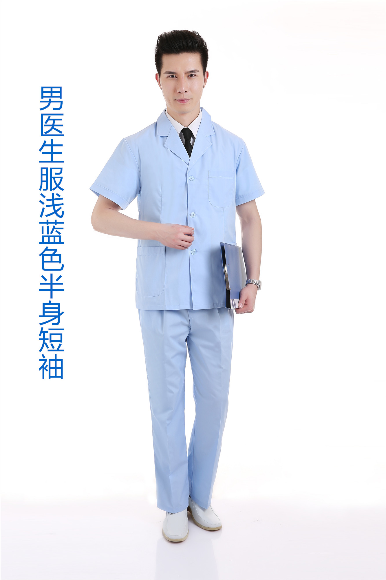 Male white physician sweatshirt short sleeve blouses male light blue healer short-sleeved blouses male physician coat with light blue long style blouses short-sleeved female healer with white long-style blouses short sleeve male doctor to serve light blue and long