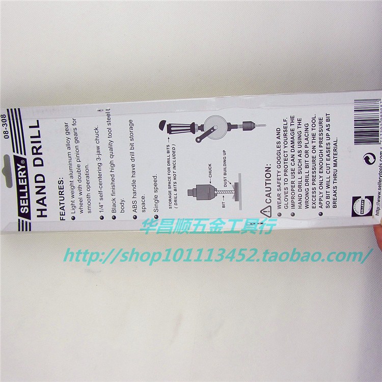 Taiwan SELLERY Shilly hand-operated drill hand-type woodworking drill hand drilling drilling 08-308