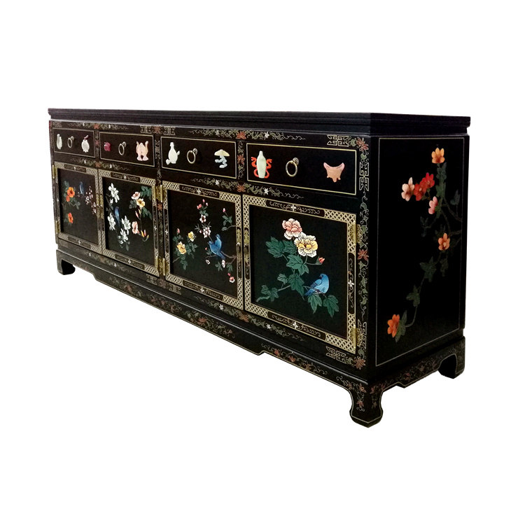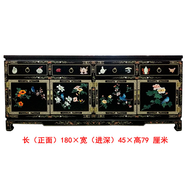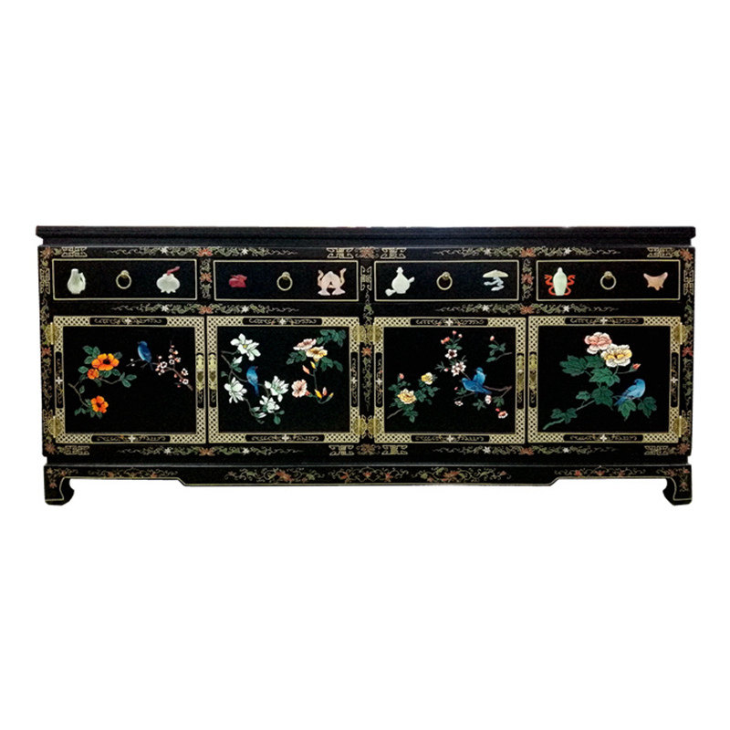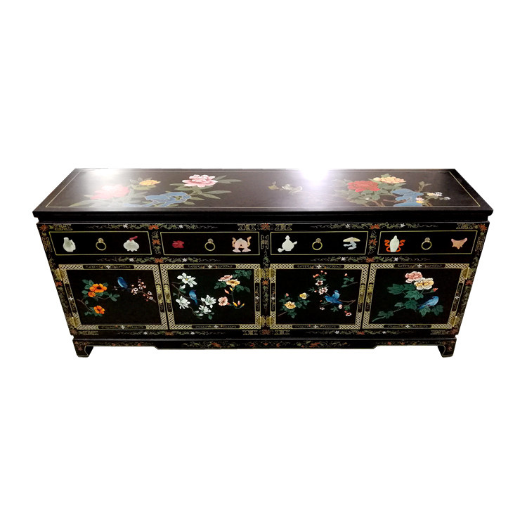 Yangzhou Lacquer Carved bone stone inlaid with four doors and four-pumping-off-closing decorative cabinet Lacquer Art Home New Classical Solid Wood Furniture