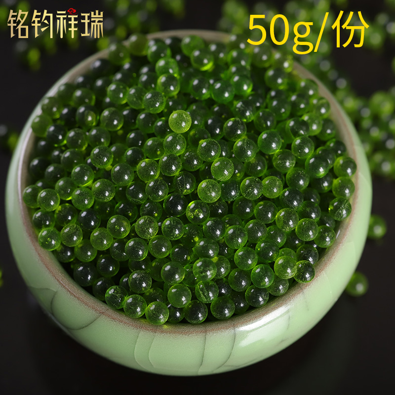 Round green glass small stone gardening vase aquarium decorated Manzasheli gem 50 g 5mm
