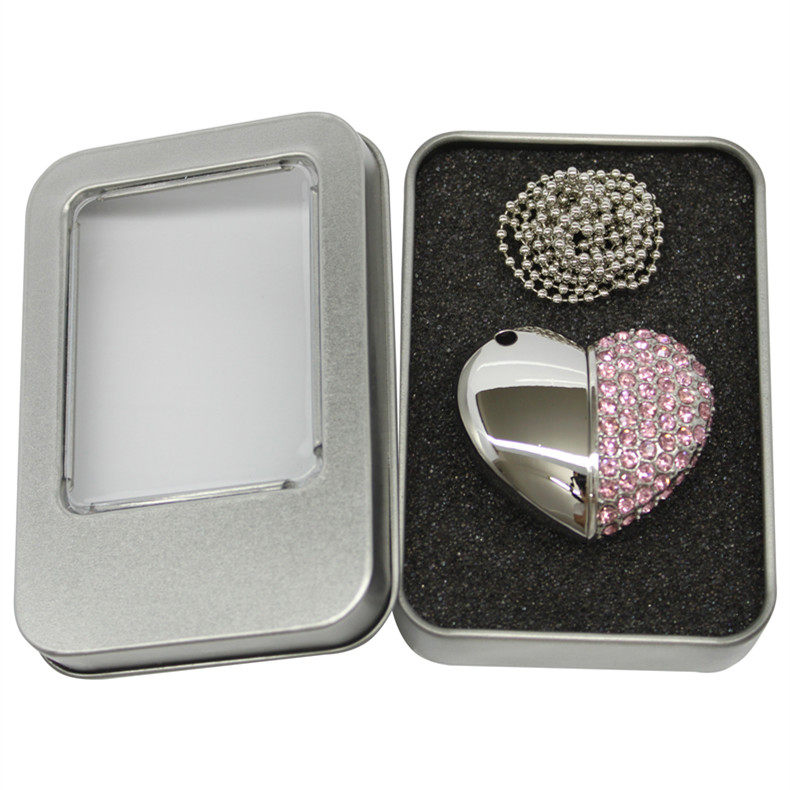 OUSU Euro 64gbU Plate Swarovar Heart Crystal Diamond USB Portable Disc Couple Necklace Female Birthday Gift