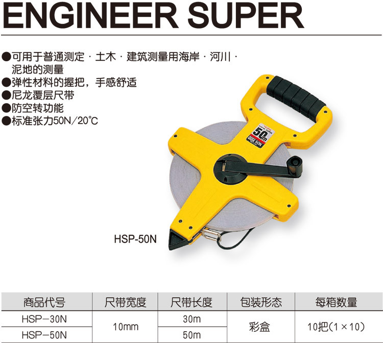 Field Island waterproof and rust-proof steel measuring tape side ground ruler 30 m 50 m steel measuring tape measuring tool HSP-30N 50N