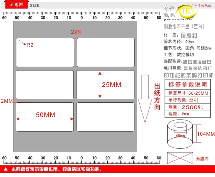 Copper version paper adhesive barcode paper labelled Form book Examination label paper 50-25-2500 sheets of double row-Taobao
