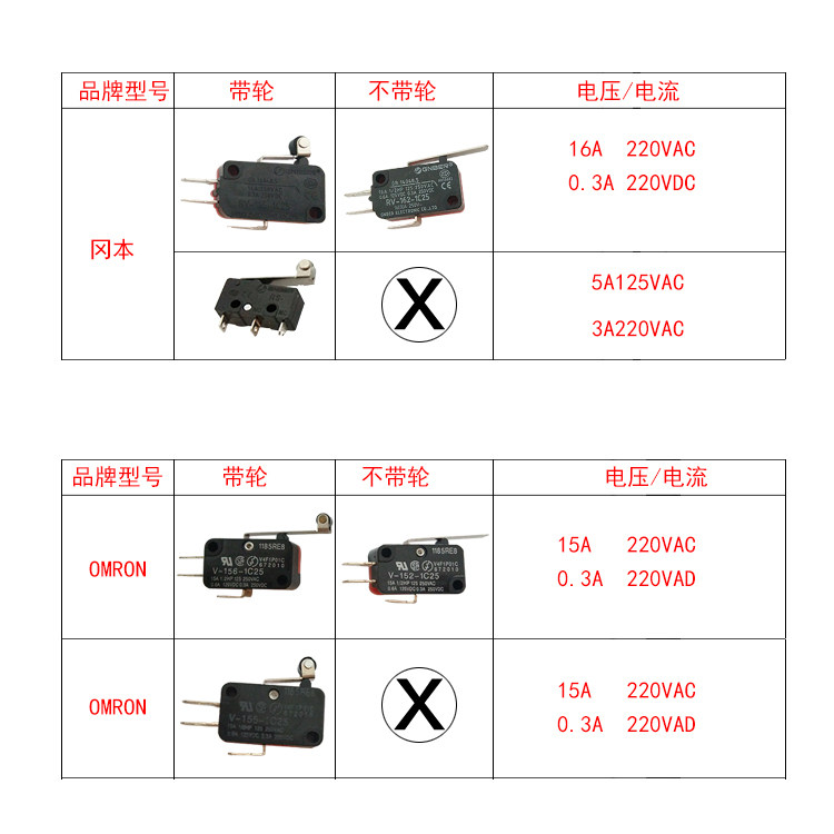 Mechanical switch (with wheel) mechanical switch (without wheel) Okamoto (with wheel) Okamoto (without wheel) Optoelectronic Switch Round Light Sensation Switch (second-line) Circular light sensation switch (third-wire) OMRON micro