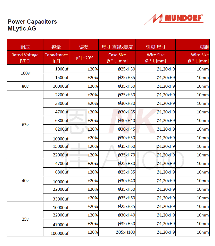 Mundorf AG mcap 25v40v63v80 filtered audio electrolytic capacitor 10000uf