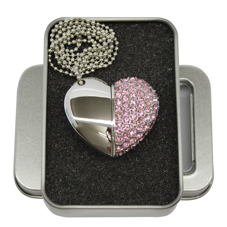 European speed 16gbU heart-shaped rhinestone USB portable disc necklace girl cute fashion Swarovski crystal lettering