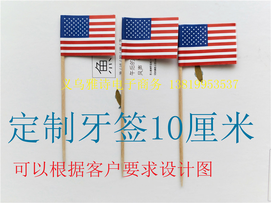 Wood disposable flower sign ten thousand national flag toothpick wine sign fruit visa with Chinese national flag toothpick 10 cm