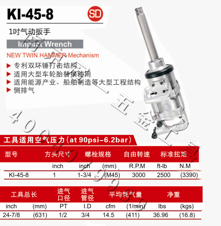 Taiwan Crown 100 million Pneumatic Tool Crown 100 million Pneumatic Wrench KI-45-8 1 Inch Industrial Grade Big Wind Gun Bolt M45