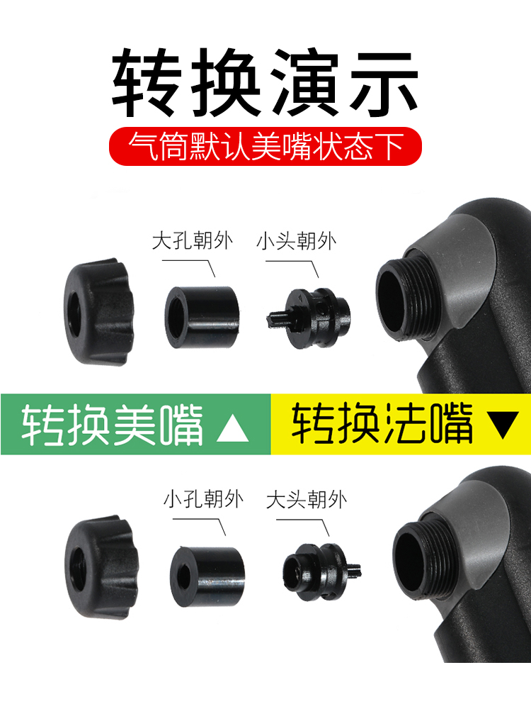 JIYOU GIYO bicycle pump Mountain bike mini pump American-French mouth with pressure gauge High pressure portable