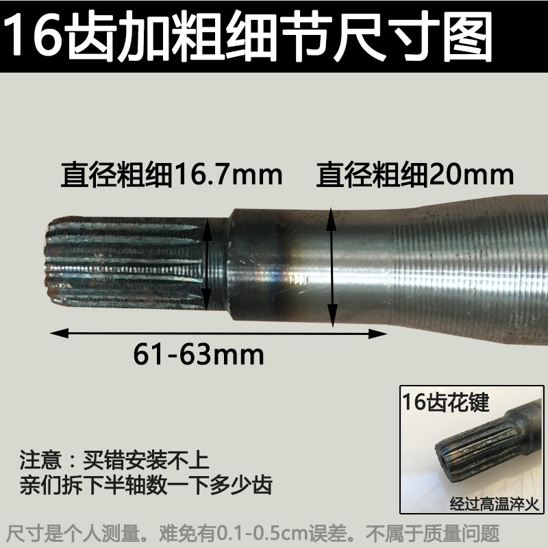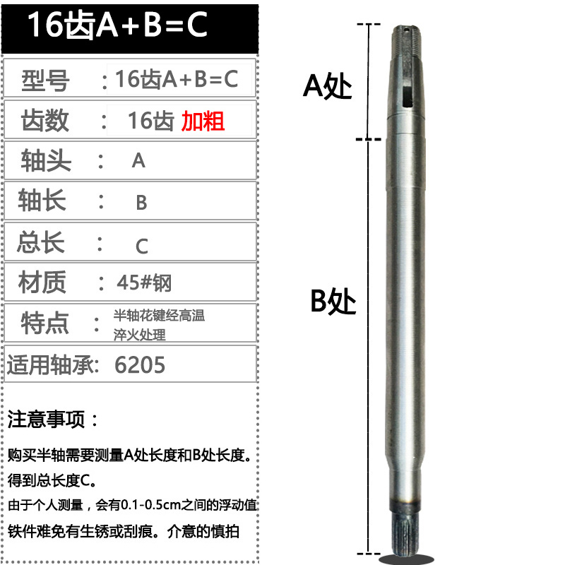 Electric tricycle rear axle half shaft 16 teeth spline drive shaft assorted 6205 bearing feeding nuts plus coarse