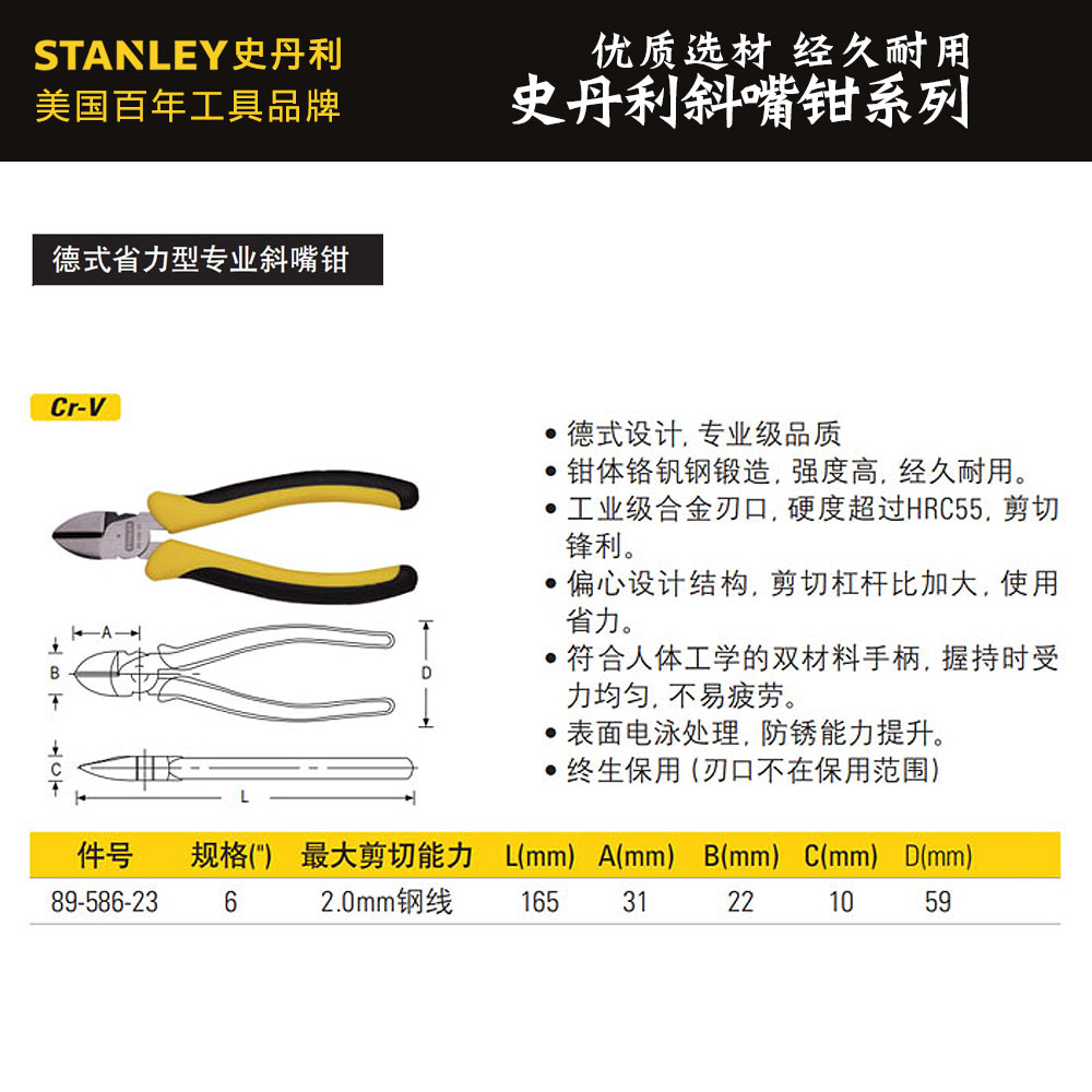 Stanley Stanley oblique mouth pliers 6 inch 89-581-23 7 inch 89-582 LABOR-SAVING SLOPED PLIERS 89-586