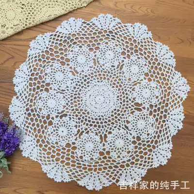 Handmade crochet hook 869NXH flower retro round mat hollow cover towel Mori pastoral cotton tablecloth rice White 35-50cm