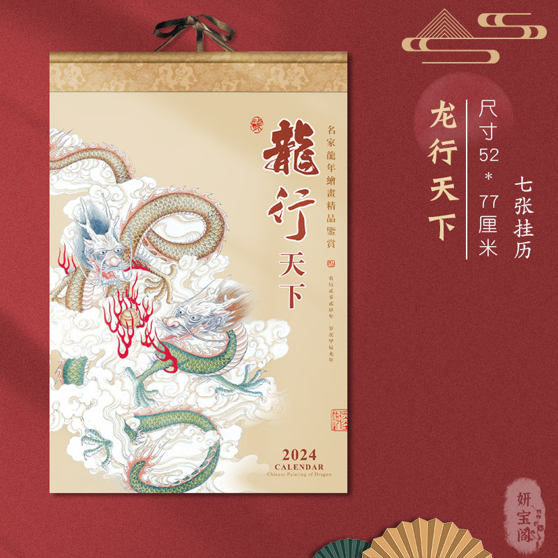 Big Hang Calendar 2024 Calendar New Dragon Year Thicken Home Landscape Wholesale Fu Characters Old Huang Calendar Creative Lunar Calendar Company Business Gift Manufacturers Wholesale Order for Special Edition Advertising Custom Dingding-Taobao