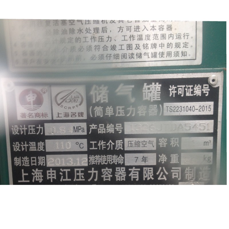 Shenjiang gas storage tank C0.6 8 air compressor gas storage tank Shanghai Shenjiang pressure vessel factory