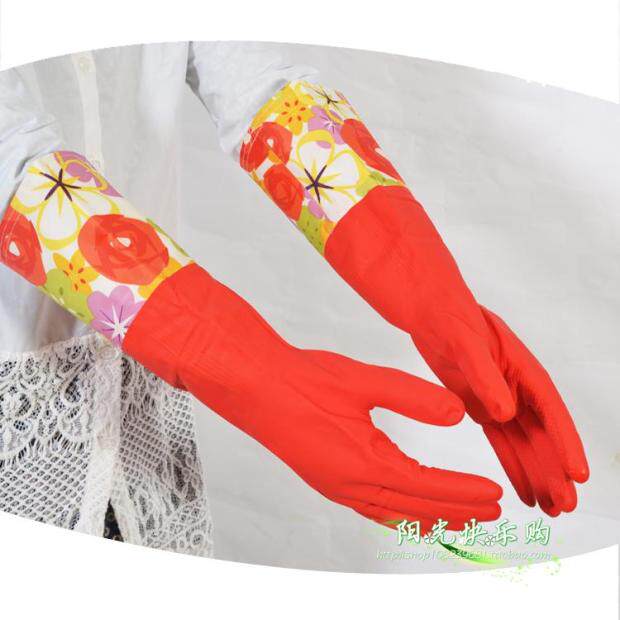 Open-mouth thickened and velvet latex leather gloves washing dishes, laundry, housework, waterproofing, winter rubber flocking gloves