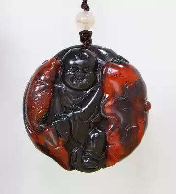Natural Guilin chicken blood jade black bottom red handle jade red jade bead tag Lucky boy has fish every year