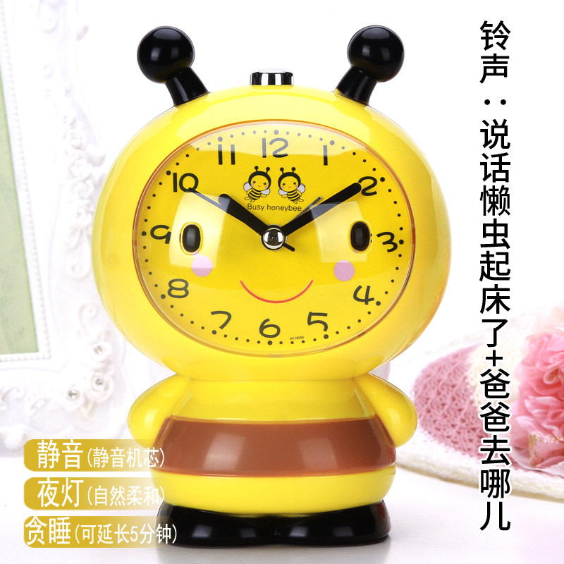 Bee creative alarm clock for children and students to start the bed special talking girl cartoon bed head silent luminous alarm clock