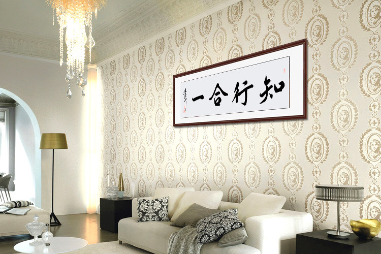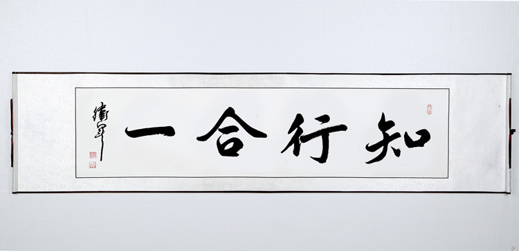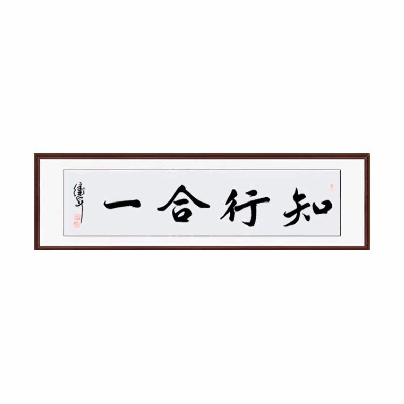 The combination of knowledge and action calligraphy works calligraphy and painting authentic custom office living room decorative painting calligraphy and painting mounted solid wood frame