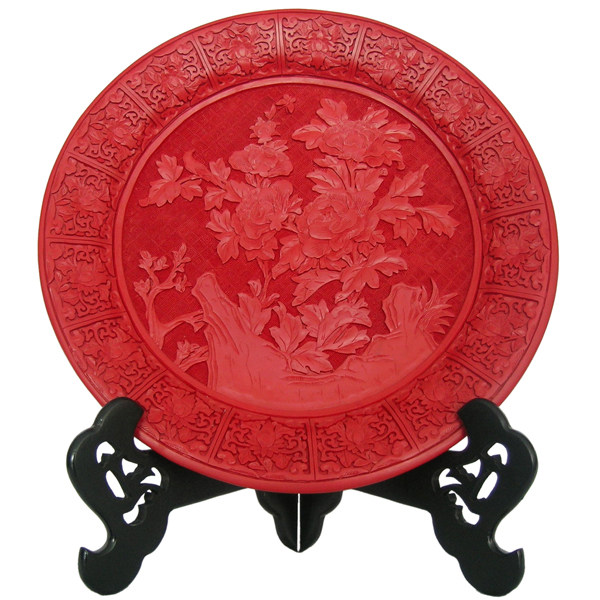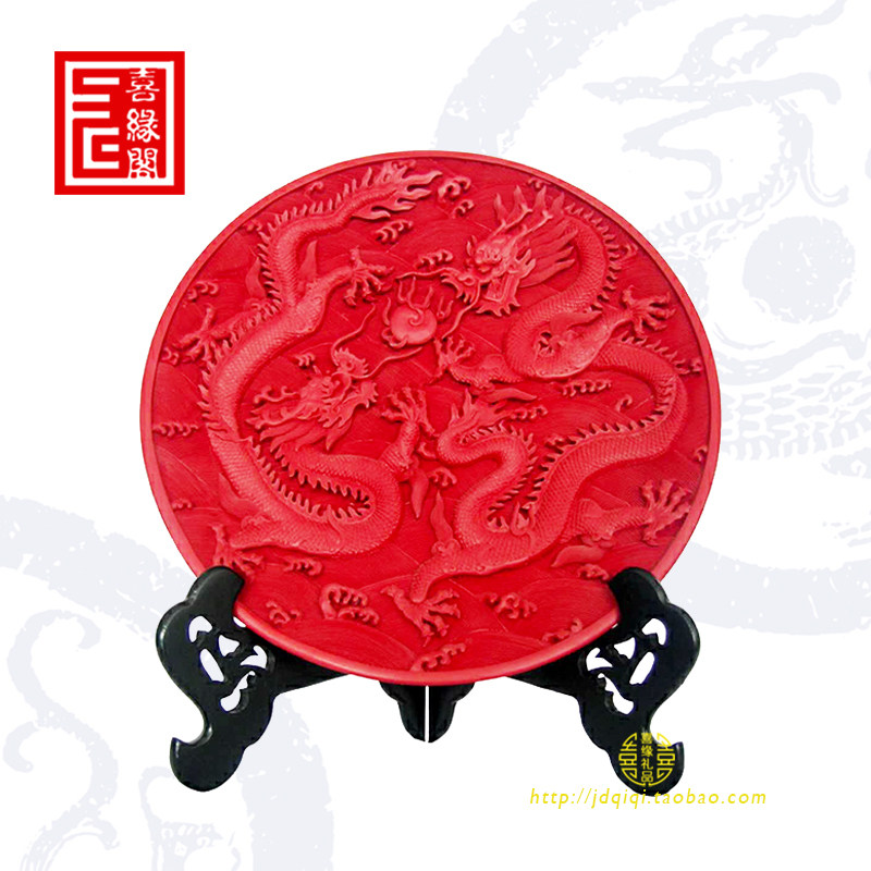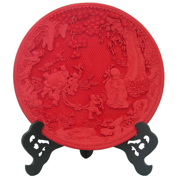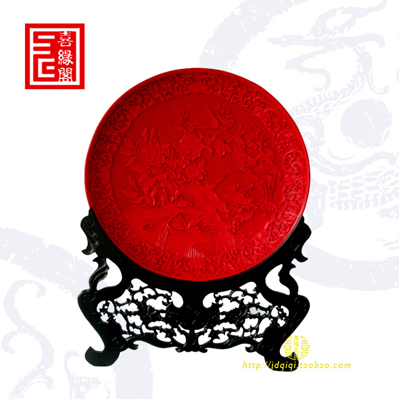 Yangzhou lacquerware gift table screen 15 inch blessing character tick red carving lacquer plate decoration business wedding celebration birthday folk craft gift decoration