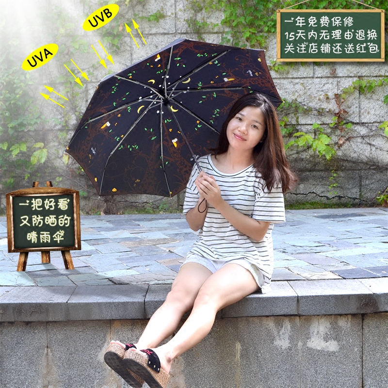 Korean owl fashion umbrella Wu Shixun with the same sunscreen UV light small fresh three-fold fully automatic sunny umbrella