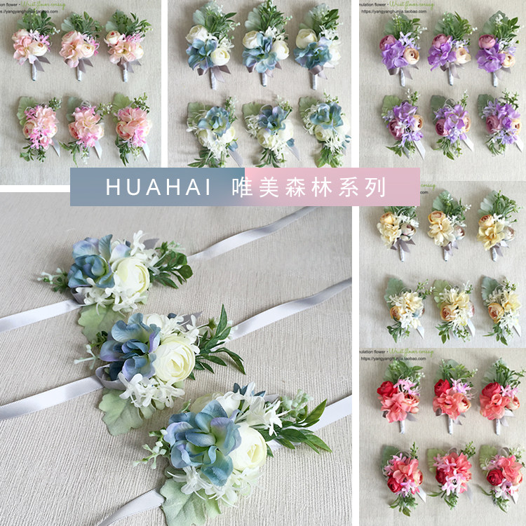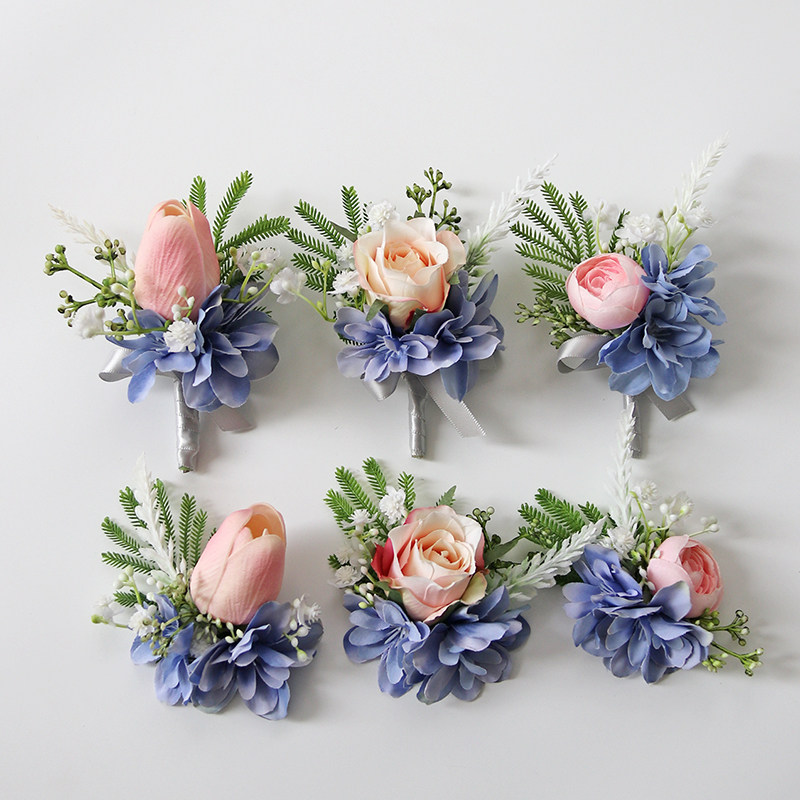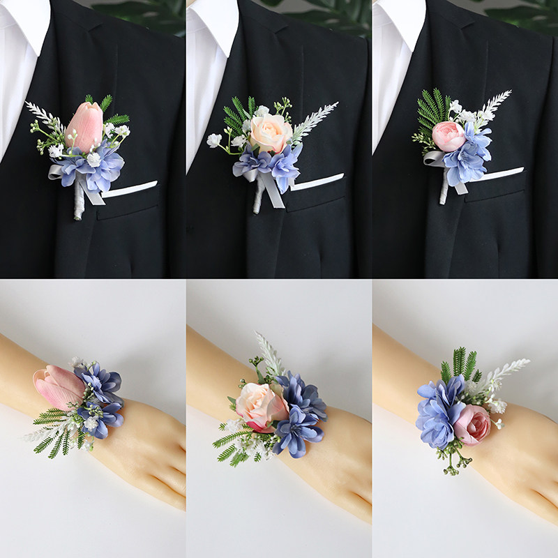 Pink Blue Chest Flowers Wrist Flowers Bride Groom Brooch Sisters Hands Flowers Tulips Tulip Rose Wedding Companion Gift Photography