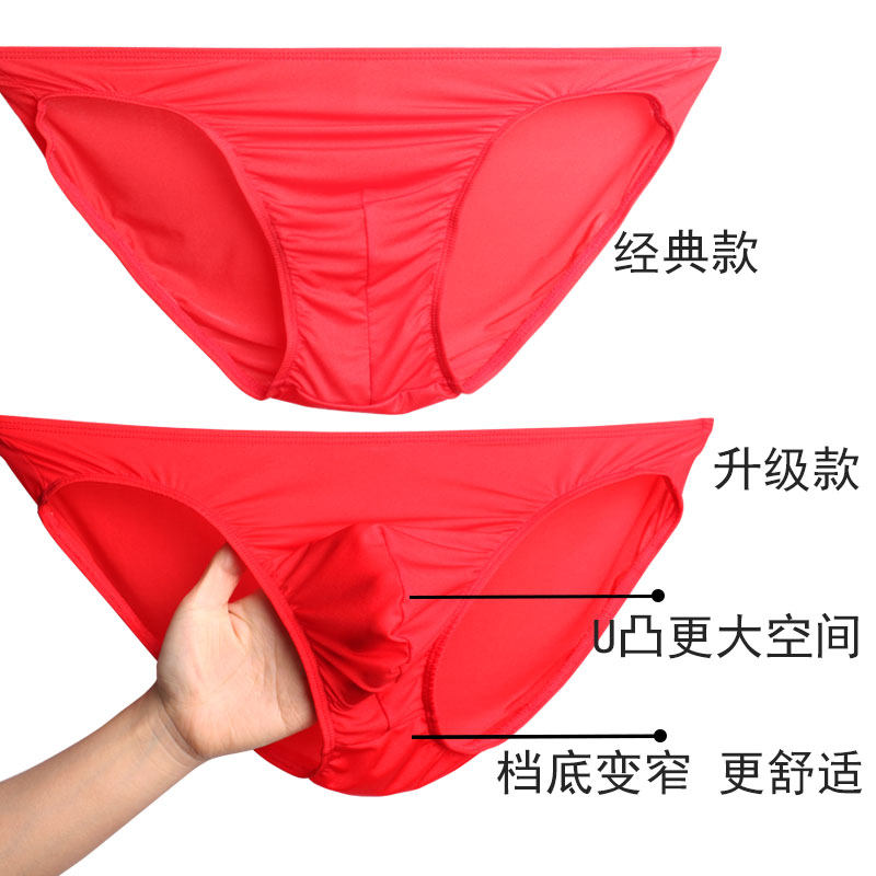 3 Ladder Cool Ultra Slim Sexy High Elasticity No Mark Real Ice Silk Briefs Male Silk Slip Breathable Triangle Pants Large Size Summer Season