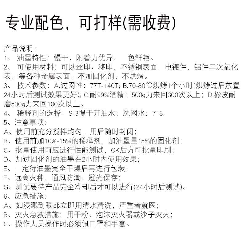 Screen Printing Pad Printing Metal Hardware Self-drying Ink Stainless Steel Ink Aluminum Oxidation Paint Ink Electroplating Ink