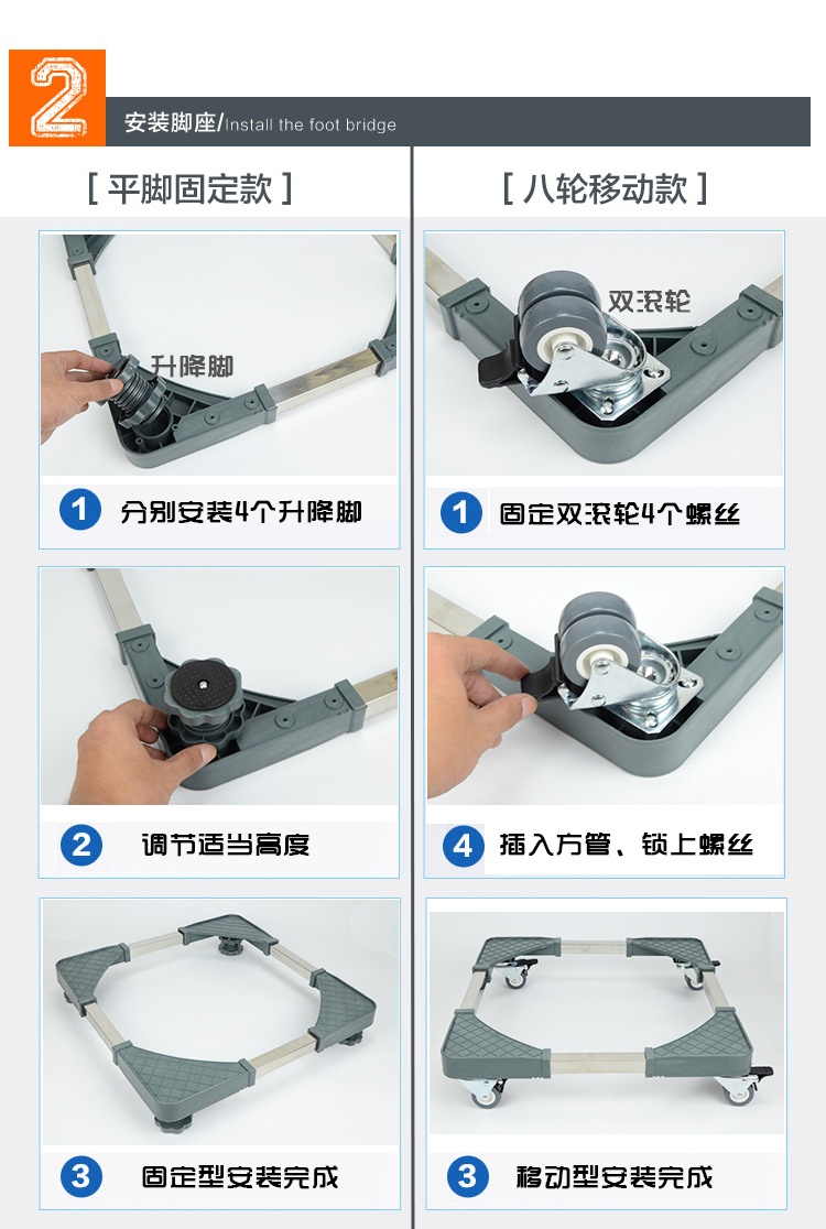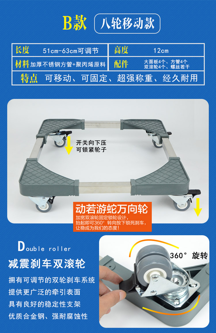 Universal Washing Machine Bracket Base Drum Mobile Nursery Stainless Steel Frame Refrigerator Chassis Plus Height Adjustable