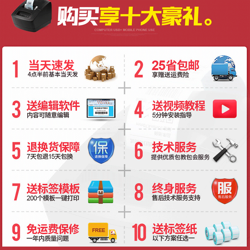 USB computer version Milk tea version Label Serial port Network interface version USB port (with USB cable)Bluetooth version plus USB computer version All-in-one