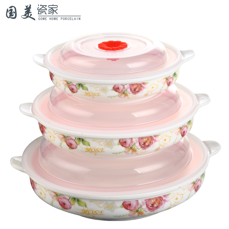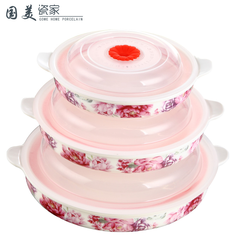 National beauty bone porcelain with lid refreshing dinner plate ceramic microwave oven fridge with three sets of steaming tray double ear fish tray refreshing box