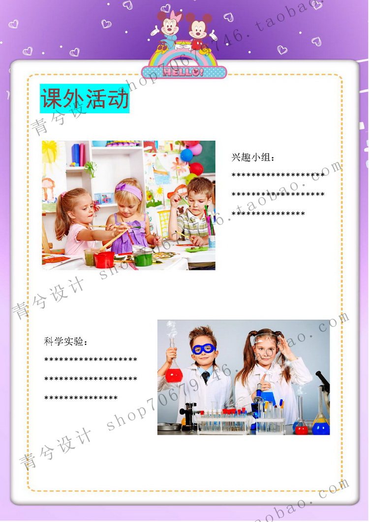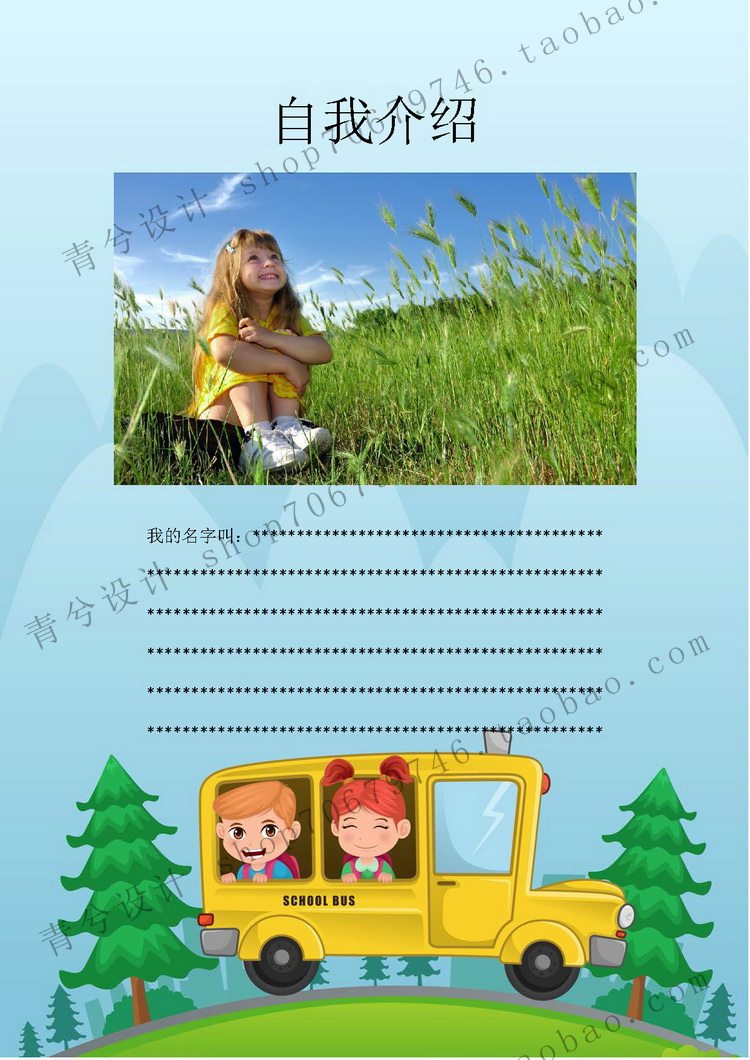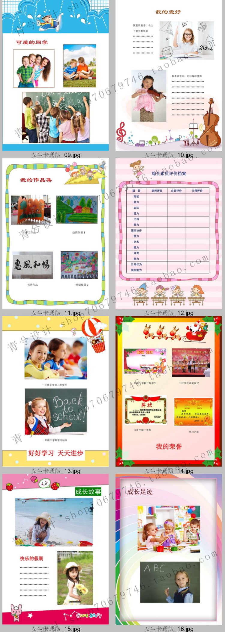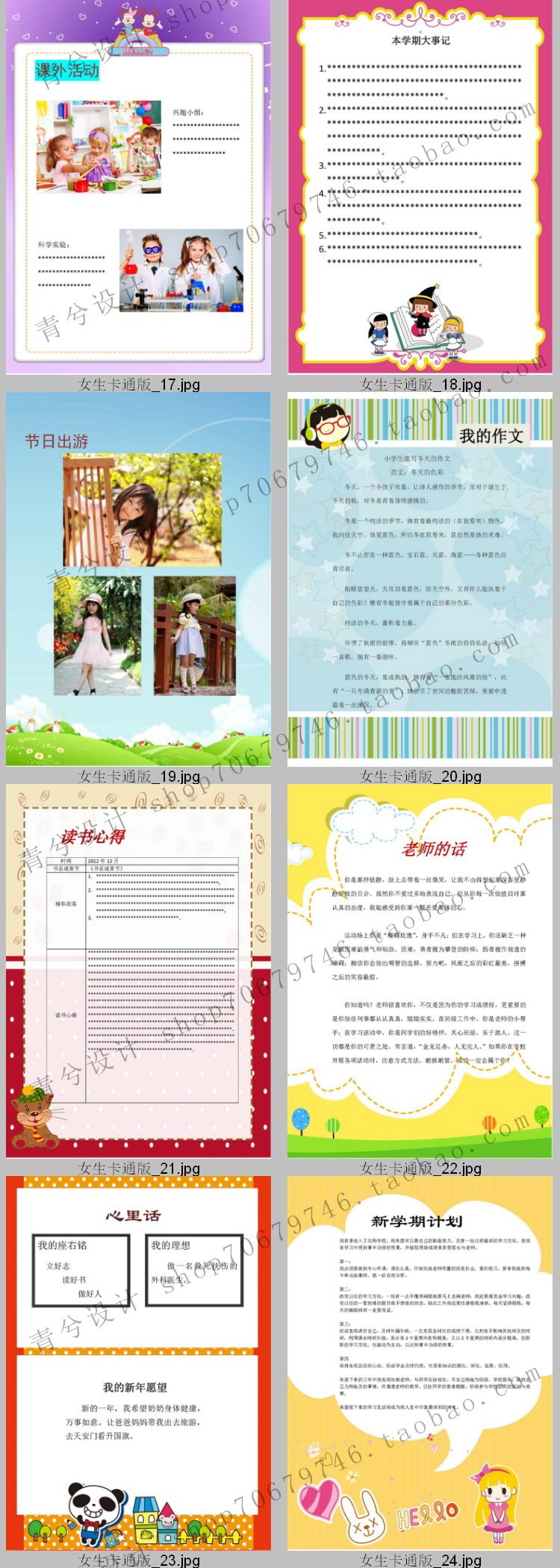 A4 Primary school student growth book record children's growth file memorial book word template A girl cartoon version 24 pages