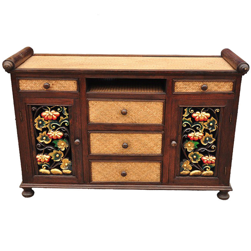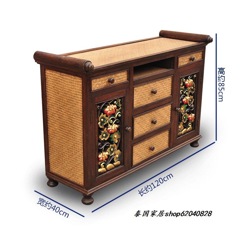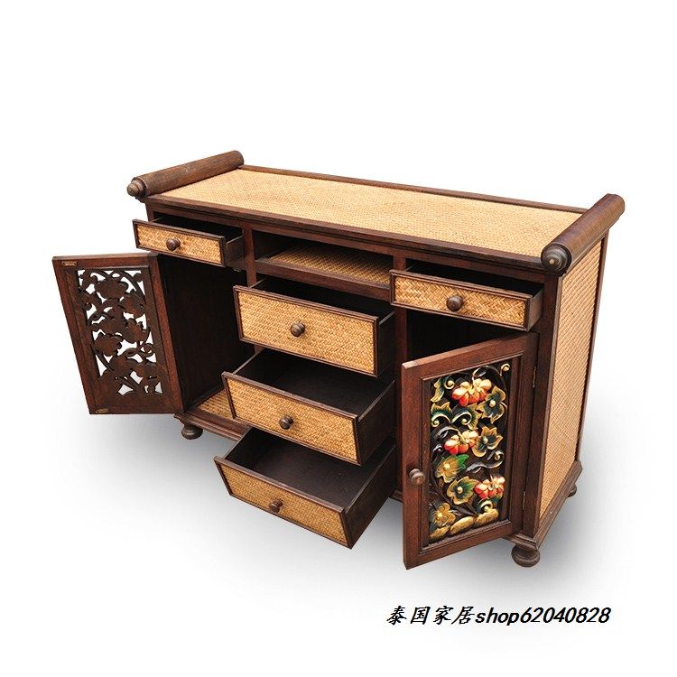 Southeast Asian characteristic furniture decoration handmade solid wood cabinet carved living room foyer porch cabinet shoe cabinet Teng weaving cabinet bookcase