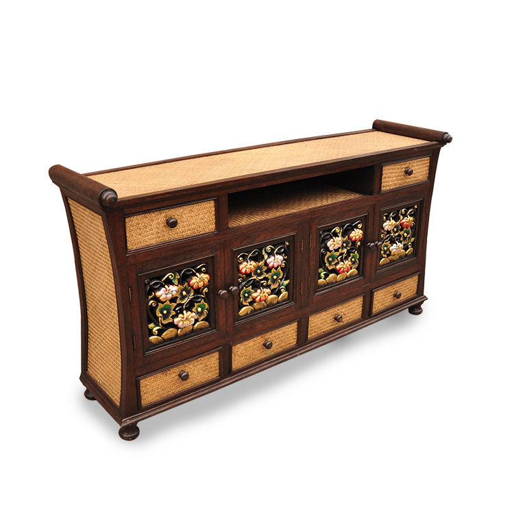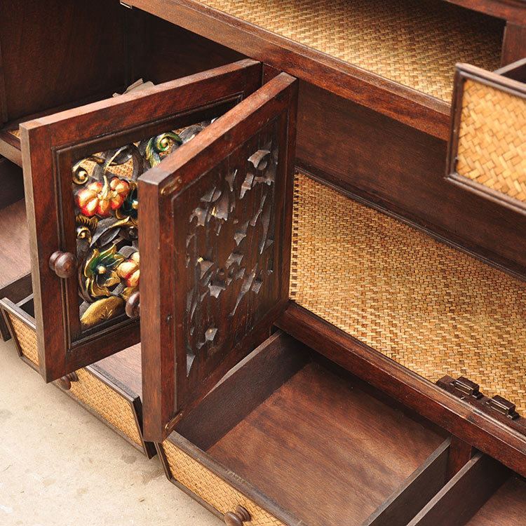 Thai-style solid wood home partition cabinet carved porch cabinet TV cabinet shoe cabinet Southeast Asian wood carving European-style porch cabinet