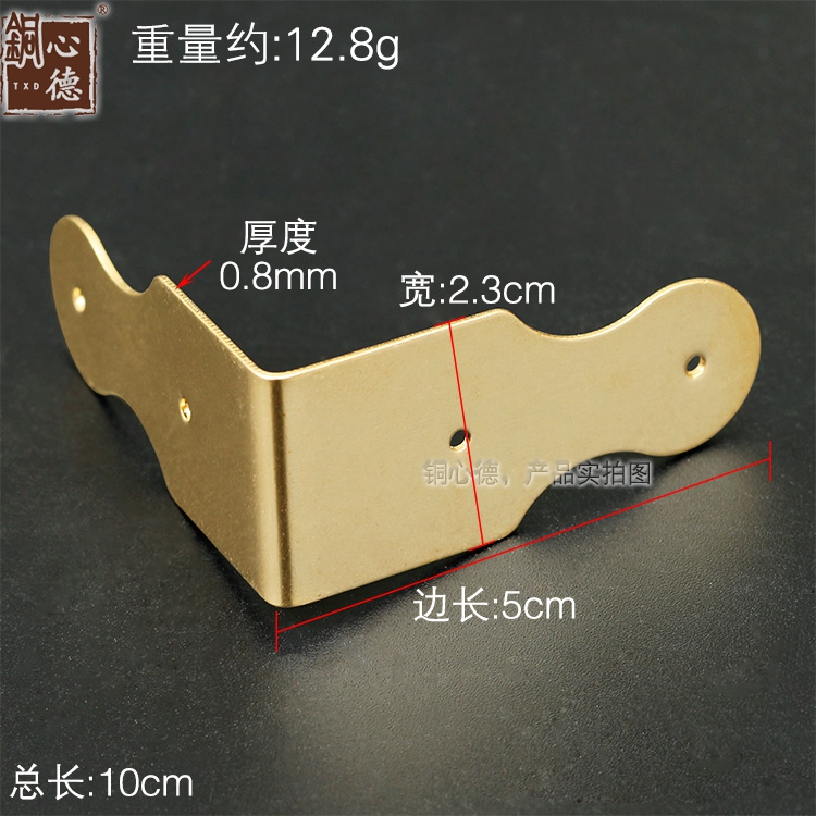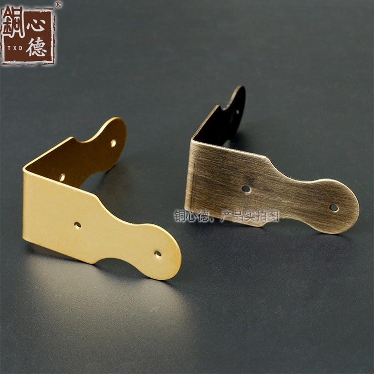 Chinese pure copper cabinet angle protection metal wooden box corner bag edge 90 degrees right horn horse L corner code bag strip decorative corner flower