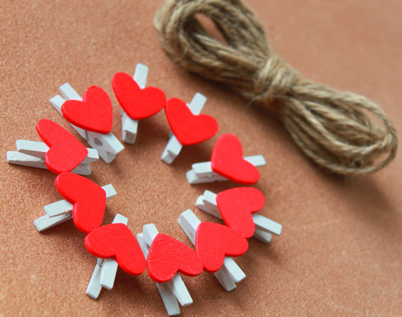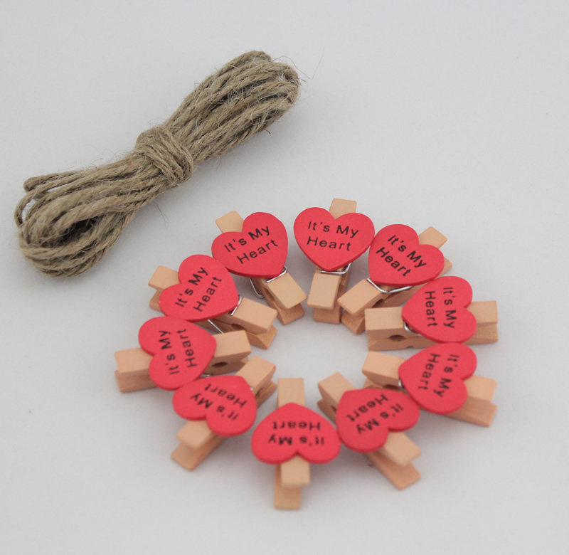 20 multicolor small cramp delivery 3 m hemp rope 16 multi-color heart-shaped clip delivery 3 m hemp rope 10 red heart-shaped clips deliver 3 m hemp rope 10 heart-shaped LOVE clips to deliver hemp rope 10