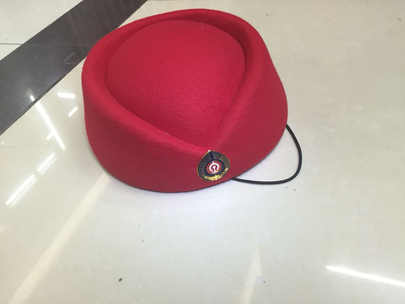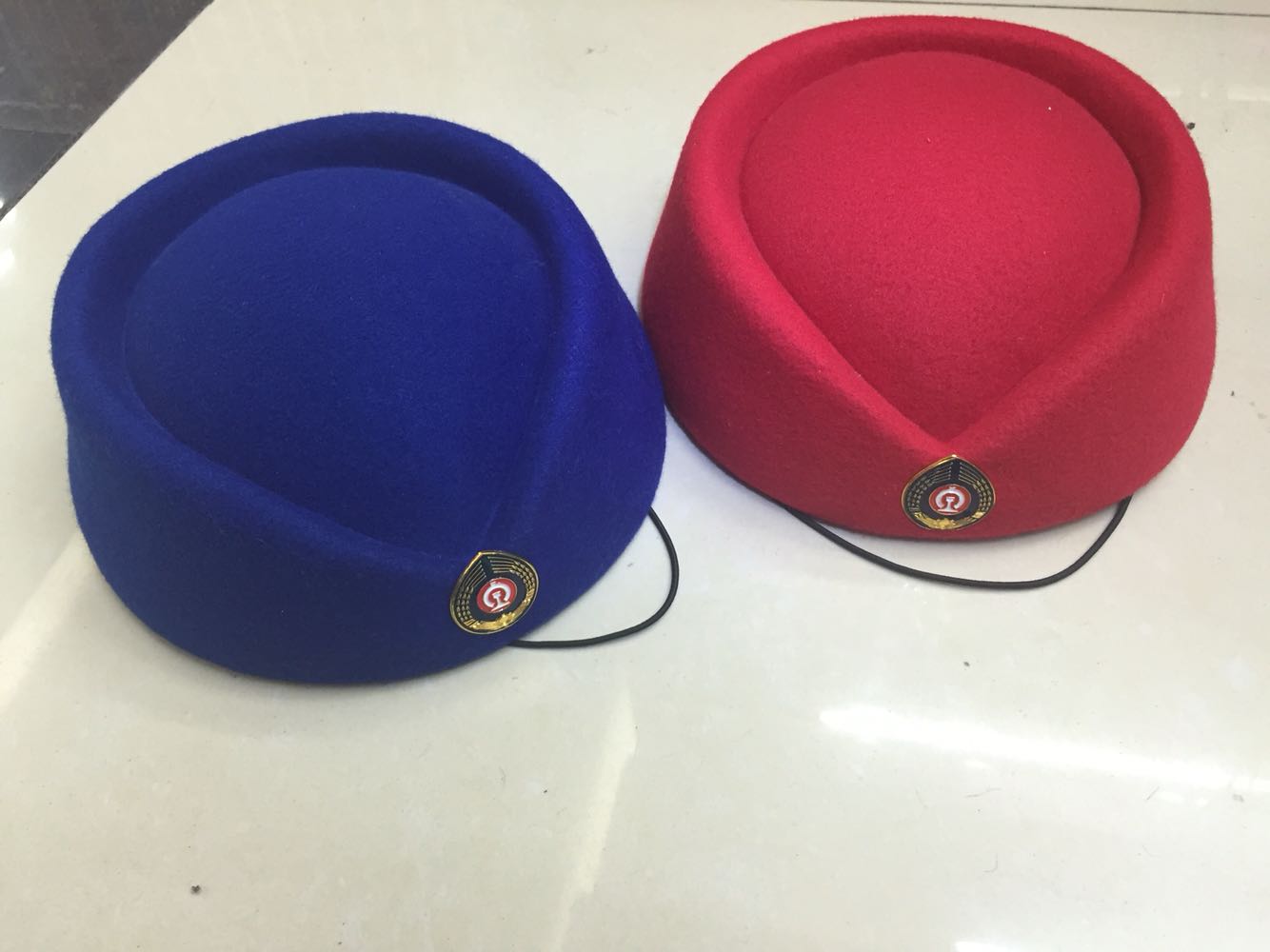 Red stewardess cap, red stewardess hat, peony hat emblem, blue stewardess hat, blue stewardess hat, peony hat emblem, red stewardess hat, worker's hat emblem, blue stewardess hat, worker's hat emblem, red stewardess hat, wheat ear hat emblem, blue