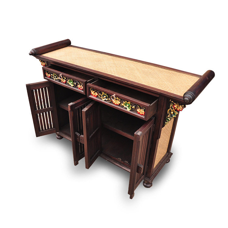 Thai characteristic handicraft home improvement cabinet handmade solid wood carving cabinet porch cabinet living room foyer decoration shoe cabinet for table