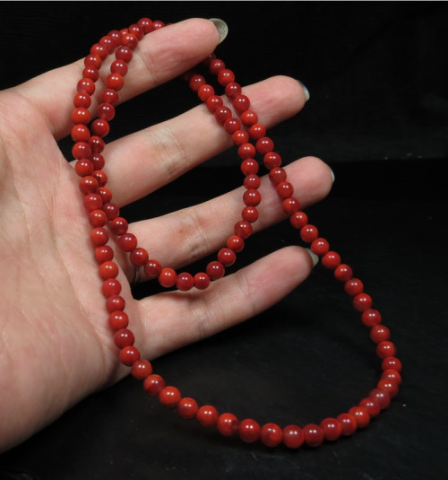 Boutique collection grade Sichuan Yangshan Nanhong Feng Meat full of meat diameter about 5 MM ball - string necklace