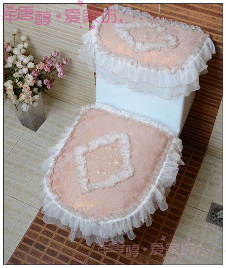 New Bowen fabric brand rose love lace toilet cover toilet cover toilet pad UO square three-piece set