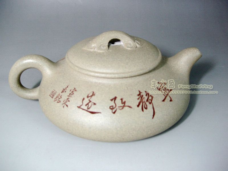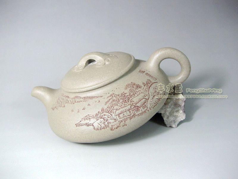 Yixing Purple Sand Pot Storage Xuan East Full Handmade 265cc Ruyi Drums (landscape) fine engraving