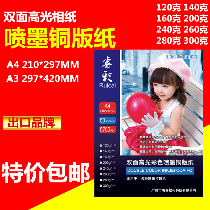 A4 inkjet copper version paper A3 double-sided high light colour spray paper 120 gr-phase paper 300 gr inkjet bright light fame sheet paper Magazine