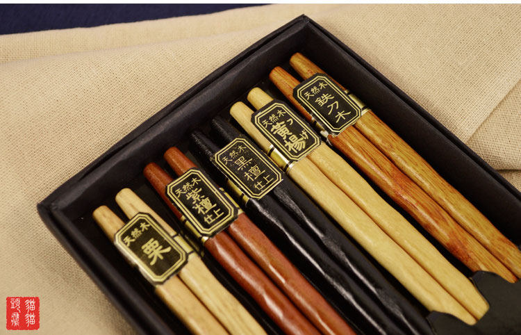 Five-color Japanese tableware chopsticks set wooden gift box Japanese cuisine pointed chopsticks chopsticks gift Chinese style